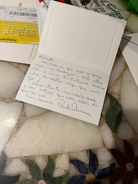 Noite chuvosa de quarta feira, fui surpreendida por um carinhoso presente. Cartão elegante assinado pelo jornalista e eterno homem das lentes PAULINHO OLIVEIRA. Onde entre outros escritos, esse comentário que nos afaga… “Olhar atento, sensibilidade e um estilo que vai além do que se vê”.