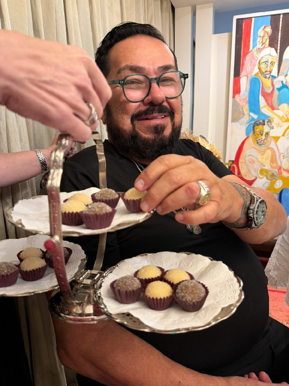 bacalhau, charutos de salmão e bobó de carangueijo com farofa de coco… gente, uma noite que fugiu do tradicional das recepções atuais e me remeteu às elegantes e glamourosas festas do nosso soçaite dos anos 70…