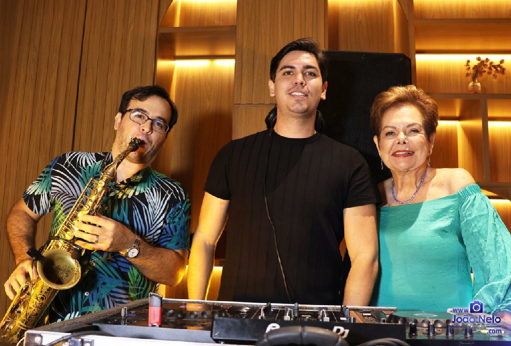 Fui feliz ao usar um verde assinado por Juraci Lyra, que me deixou melhor… Recebi a maioria dos amigos no hall de entrada do Olimpo Prime, no América. Pude dar boas vindas e agradecer as presenças, clicadas por João Neto, Jovinho e Wellington Barbosa (voltou às lentes).