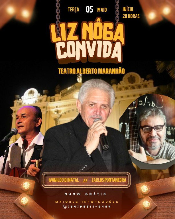 Embalado pela sua voz marcante, o cantor potiguar Liz Nôga sobe ao palco do histórico Teatro Alberto Maranhão na próxima terça-feira, dia 5 de maio, às 20h, com o espetáculo “Liz Nôga Convida”.