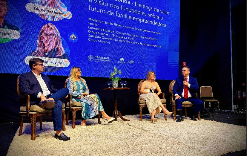 No bloco cultural e de trajetórias, uma mesa reúne Maria Luiza Guedes (Fio a Fio), Grace Gosson (Praiamar), Sandro Peixoto (Sadio) e o mediador Stéffano Antunes (Scopo), para discutir como a cultura organizacional sustenta o legado familiar.