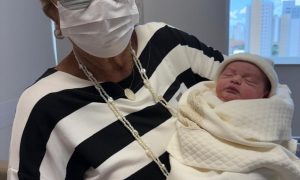 Com um largo sorriso e amor transbordando, a querida GRAÇA QUEIROZ festejou a chegada de CELINE, filha do neto Thiago e Micheli....