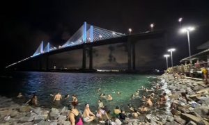 Calor do verão, água morna e a iluminação do Mercado Público da Redinha, perto da Ponte Newton Navarro, formaram um cenário que...